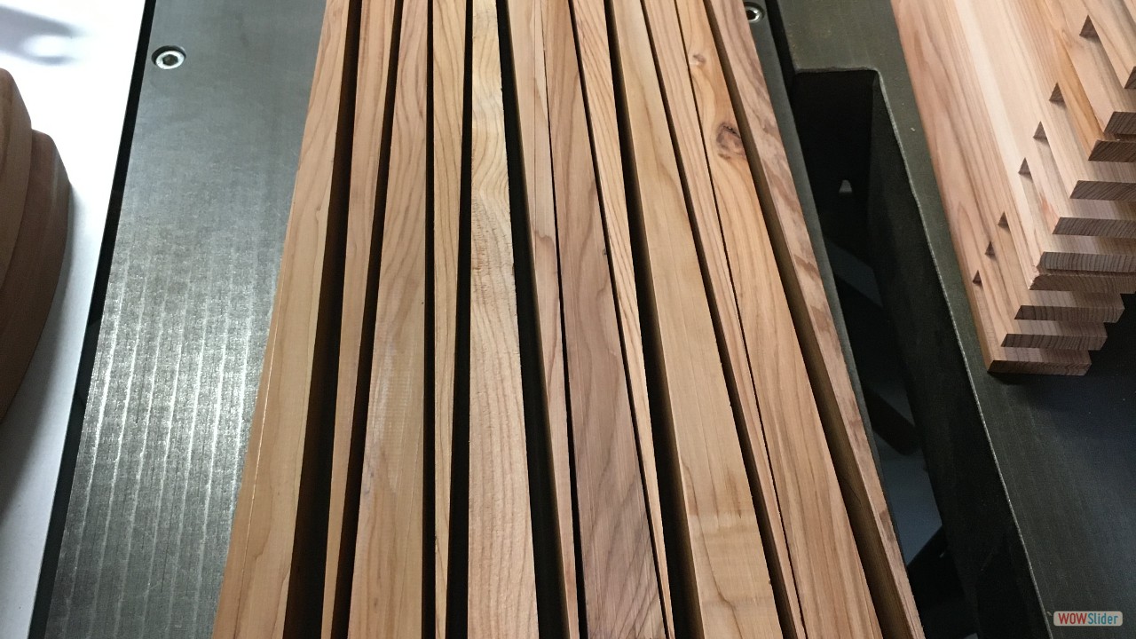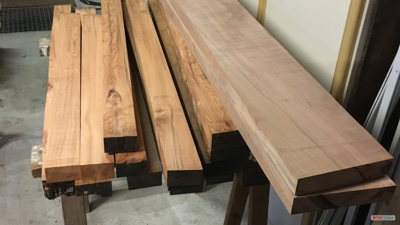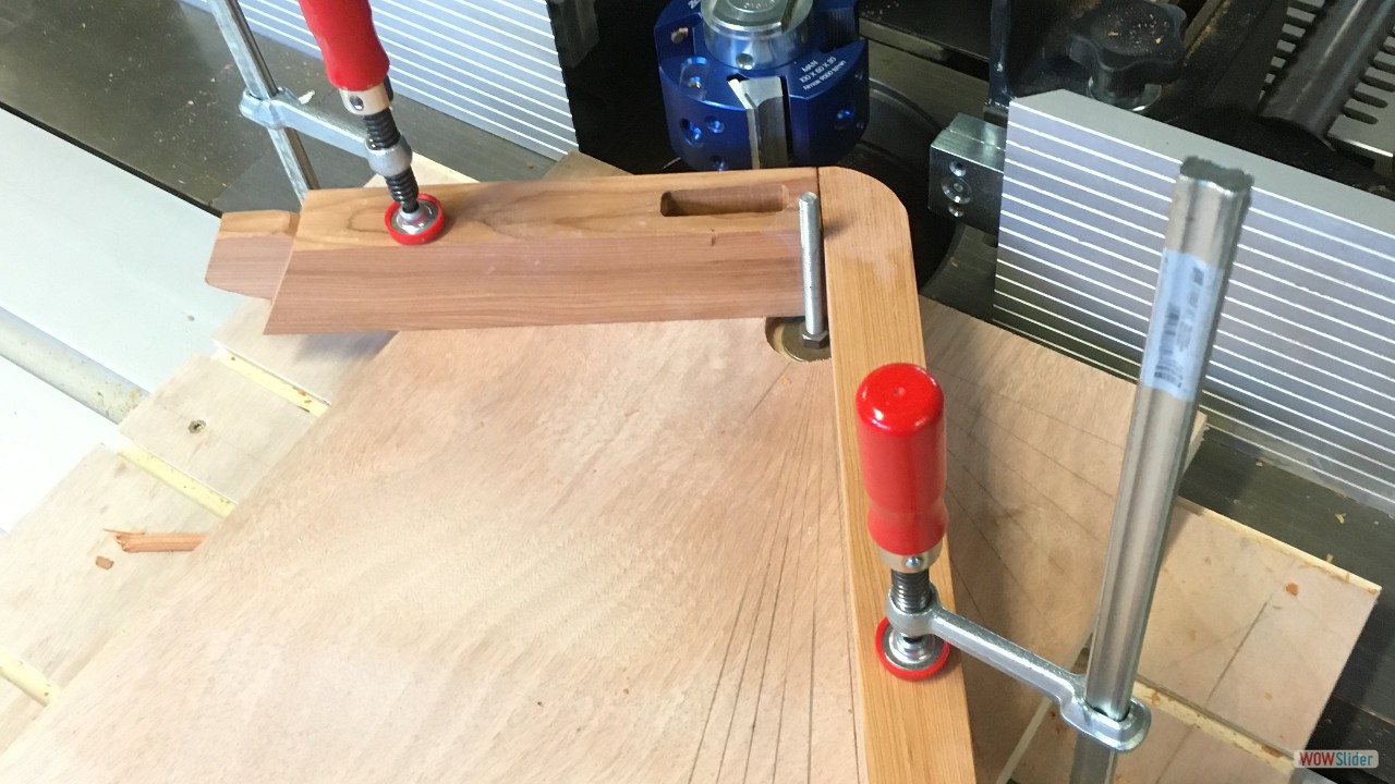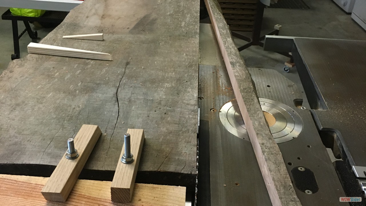 Plateaux d'Orme.1 Plateaux de Cèdre du Liban (De Charente Maritime)2 Plateau d'Orme, 60 ans après la coupe!3 C'est le début du délignage....4 5 6 7 8 9 Les bruts pour les pieds et les assises.10 Débit des pieds et des assises11 Beaucoup de copeaux.....12 13 En sortie de la rabot / dégauchisseuse14 Les assises (trois morceux par assise).15 Montage d'usinage pour l'assemblage avec des dents de scies.16 Phase de collage des assises.17 Les assises sont collées.18 Montage d'usinage pour les rayons sur les assises.19 20 21 Première utilisation du montage d'usinage.22 Autre montage pour faire les rayons des assises.23 5324 5425 Réalisation des enfourchements pour les pieds.26 L'outil sur la toupie pour réaliser les enfourchements.27 Voilà le travail.28 Pour les 4 tabourets.29 Enfourchement pour les traverses.30 31 Gros plan sur la traverse.32 Montage d'usinage pour la mortaise.33 Autre vue.34 La série des traverses pour les 4 tabourets.35 Encore un autre montage d'usinage....36 Juste pour une petite coupe.37 Les 4 assises et les 4 traverses.38 Encore un autre montage pour faire une petite pente de 3°.39 Une petite chute de bois, a faire pour 12 pieds.40 Les pieds et les chutes41 42 Des chutes pour faire.....?43 Collage des pieds sur les traverses.44 Il faut beaucoup de serre-joints.45 Pieds avec traverses.46 47 Montage à blanc...avant collage et avant les rayons.48 Il faut encore faire les arrondis.49 Réalisation des arrondis....12 opérations identiques.50 51 52 53 54 55 56 57 L'outil pour faire les rayons.58 Voilà le résultat, il reste le ponçage....59 Pour le collage il faut encore faire un petit montage.60 61 62 Petites brides pour le serrage.63 Utilisation des brides pour un bon collage.64 Les tabourets s'empillent bien.65 66 Voilà, autre vue d'ensemble.67 Vue de dessus.68 Autre vue de l'empillage des tabourets.69 FIN du diaporama.....A bientôt.70