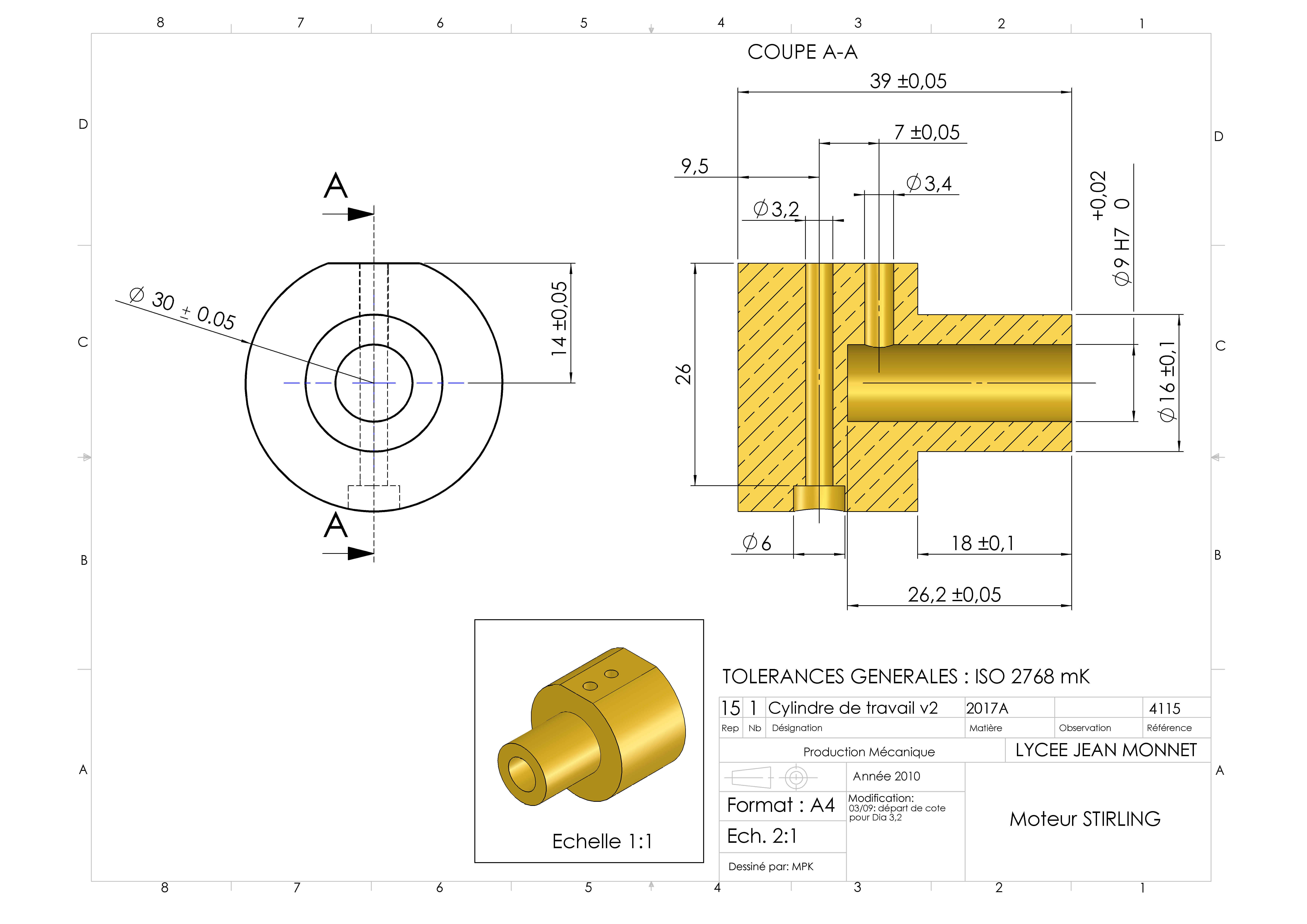 Exo 1 Gestion de production "Cylindre de refroidissement" du Moteur Stirling