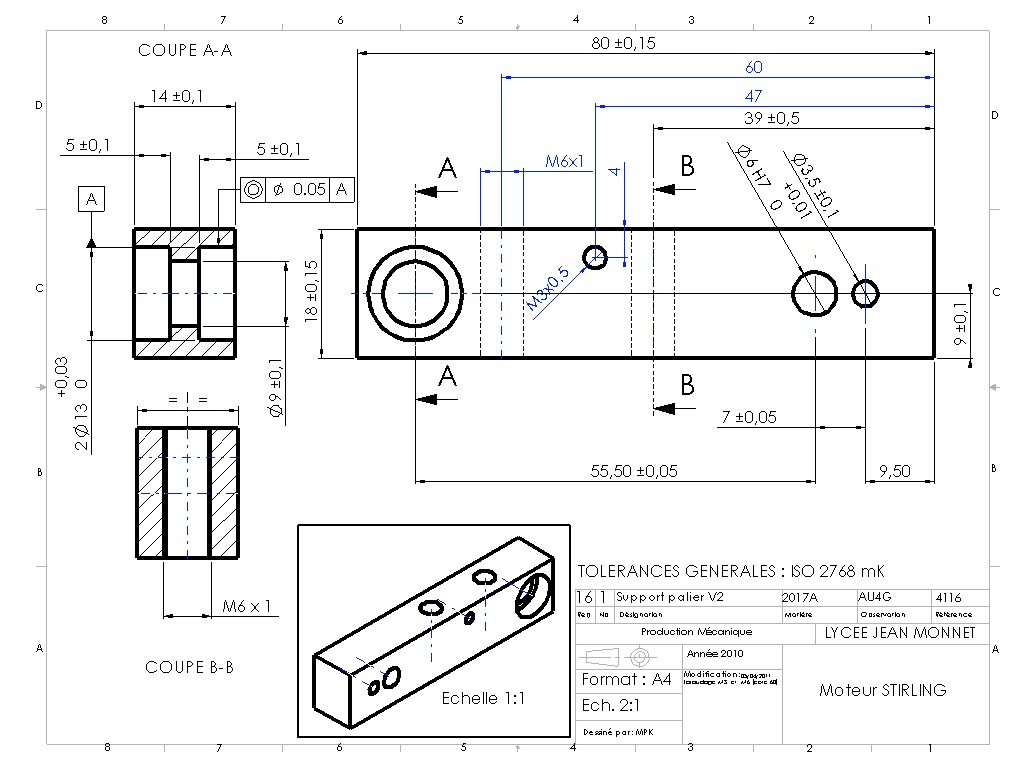 Étude dossier de fabrication " Volant G et D Moteur STIRLING"