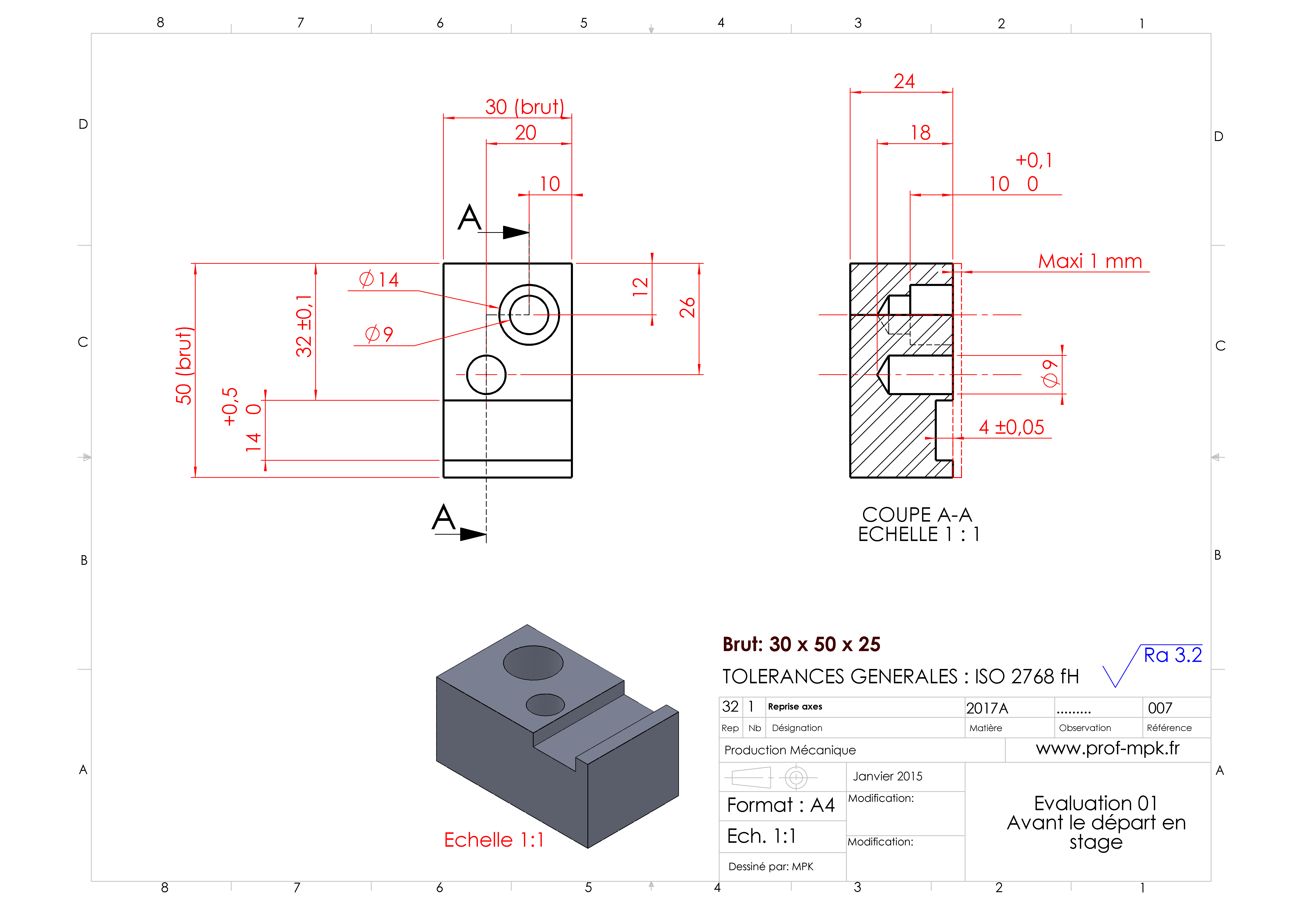 Surfaçage, Rainure 3 passes, (modif programme), Pointage, perçage et lamage. (C21, C22, C23, C31)